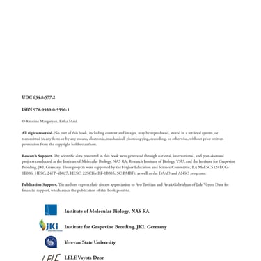 Research Support. The scientific data presented in this book were generated through national, international, and post-doctoral projects conducted at the hashtag#Institute of Molecular Biology, NAS RA, Research Institute of Biology, hashtag#YSU, and the hashtag#Institute for Grapevine Breeding, JKI, Germany.