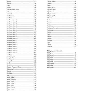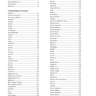 This book is the most comprehensive scientific study ever conducted on the grapevine biodiversity of Armenia. For the first time, it presents precise ampelographic and genetic characterization for #181 grapevine varieties, comprising #117 neglected autochthonous cultivars, #56 bred cultivars, and #8 wild grapevines, relics of the country’s ancient viticultural landscape. For each accession included in our book, the ampelographic characterization was performed using 28 OIV, matched with 28 UDC, and 19 UPOV descriptors, while molecular fingerprinting was conducted with 25 nuclear simple sequence repeat (nSSR) markers.